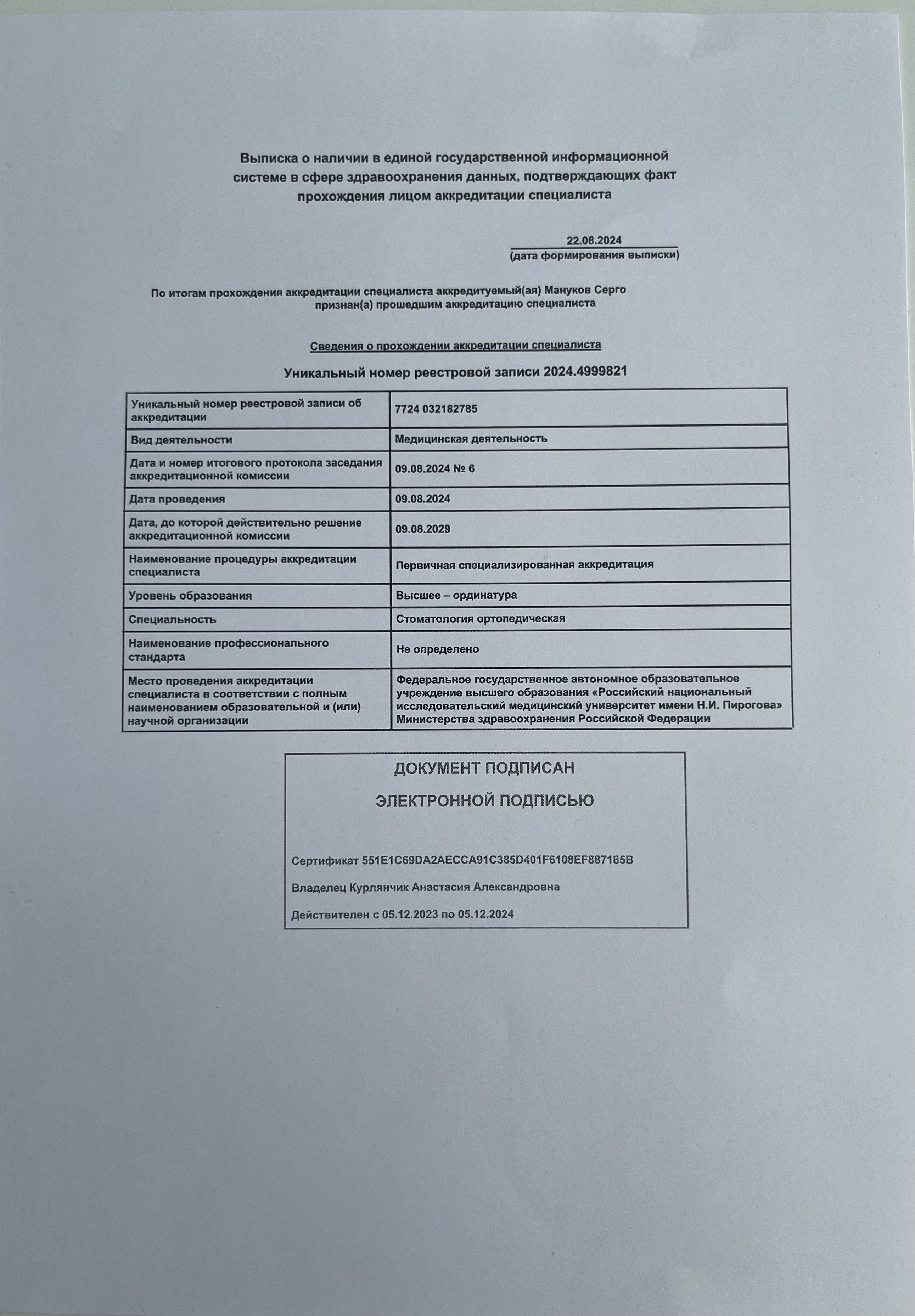 წარმატებით გაიარა ლიცენზირებული გამოცდები შეერთებულ შტატებში პირველადი სამედიცინო დახმარების, სტომატოლოგიისა და სტომატოლოგიური ჰიგიენის სპეციალობებში (BLS, JCNDE 2019 NBDE 1, NBDE 2, NBDHE).